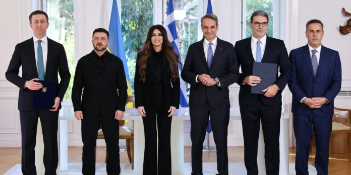 Υπεγράφη στο Μέγαρο Μαξίμου, παρουσία του Κυριάκου Μητσοτάκη και του Βολοντιμίρ Ζελένσκι, η ενεργειακή Συμφωνία για την μεταφορά LNG από την Ελλάδα στην Ουκρανία.